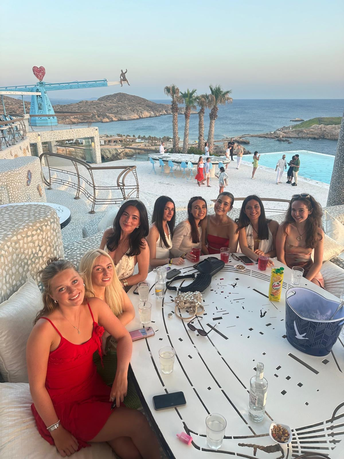 You will be hosted in a premium booth in the exclusive VIP area (usually €500 minimum spend) with breathtaking views of the 45m marble infinity pool & world class DJs, while being treated to premium bottle service.